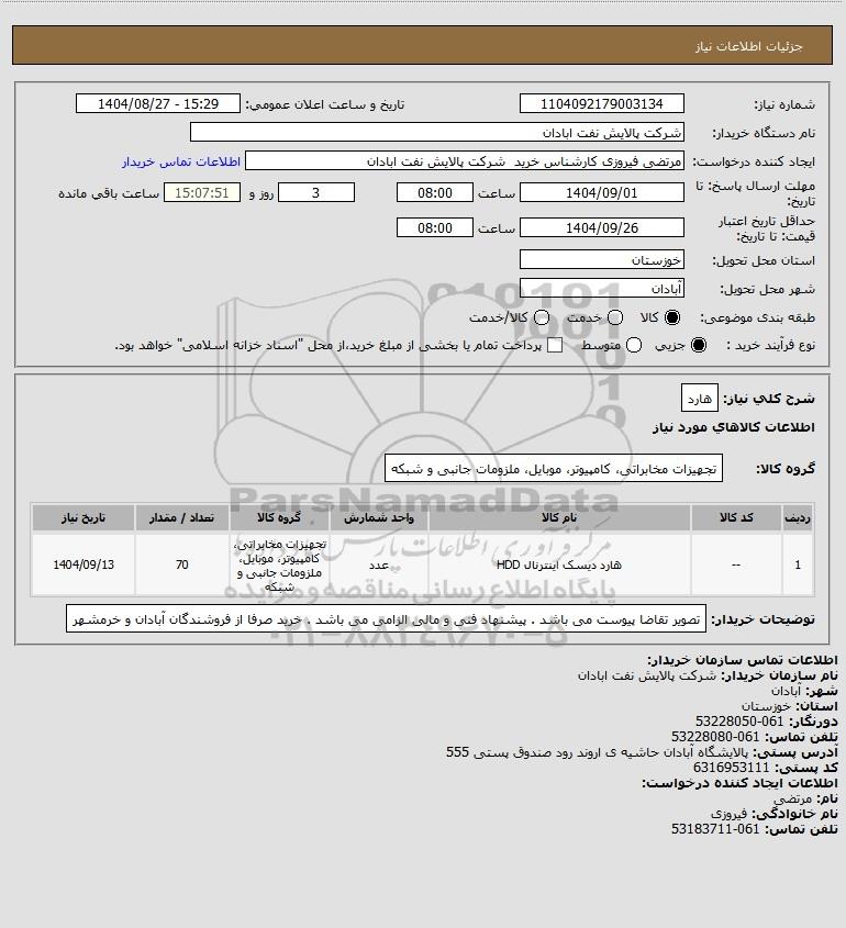نام سازمان خریدار: شرکت پالایش نفت ابادان
