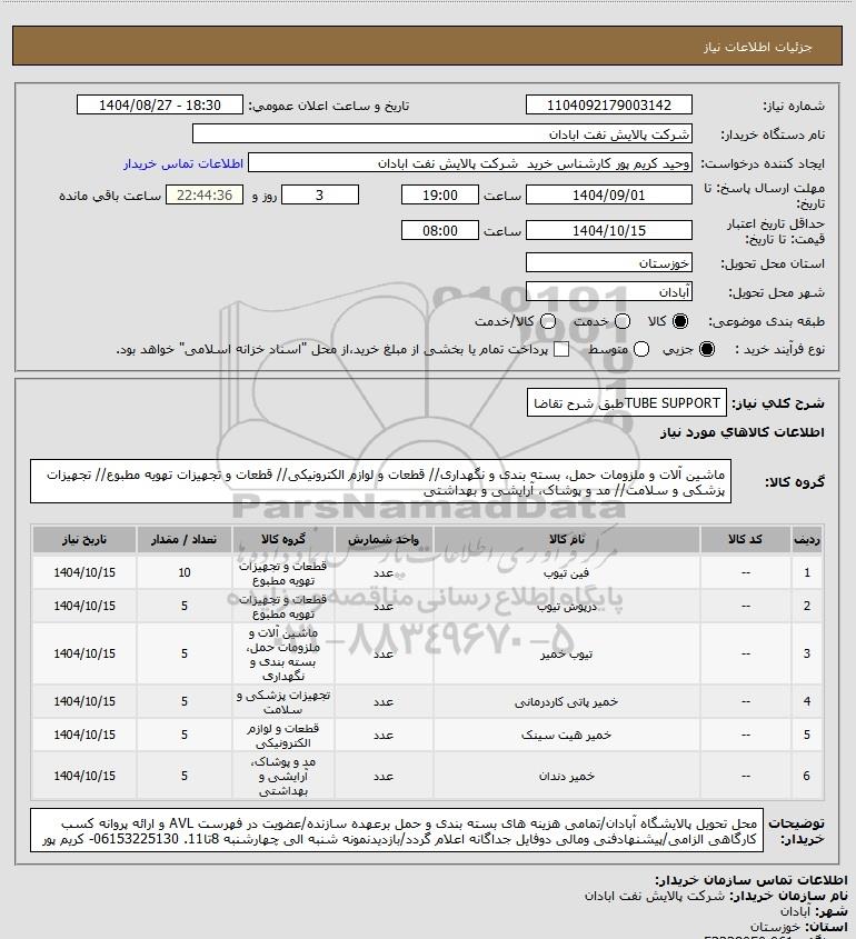 شرح کلی نیاز: TUBE SUPPORTطبق شرح تقاضا