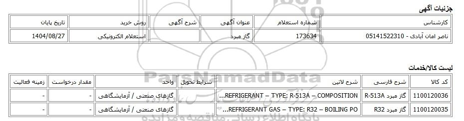 ناصر امان آبادی - 05141522310173634گاز مبرداستعلام الکترونیکی1404/08/27