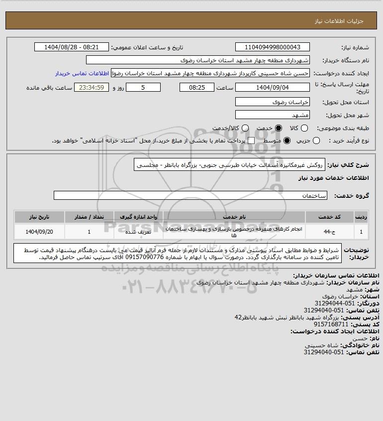 نام سازمان خریدار: شهرداری منطقه چهار مشهد استان خراسان رضوی