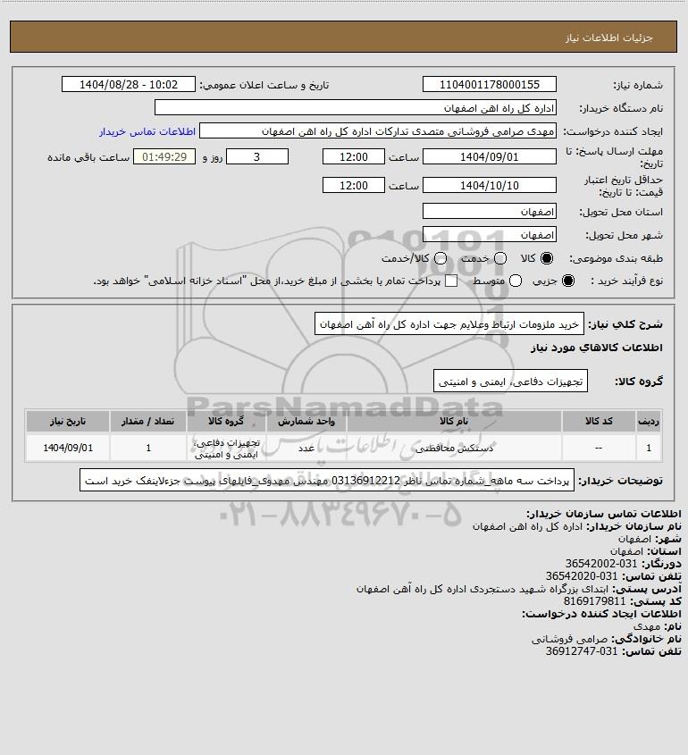 شرح کلی نیاز: خرید ملزومات ارتباط وعلایم جهت اداره کل راه آهن اصفهان