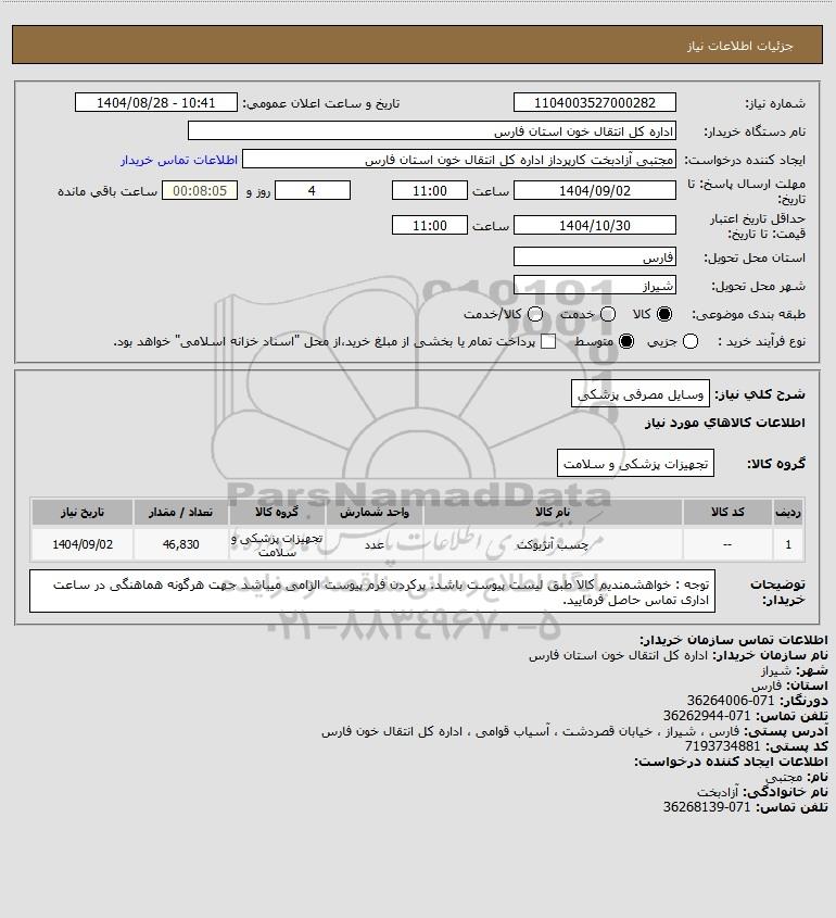 شرح کلی نیاز: وسایل مصرفی پزشکی