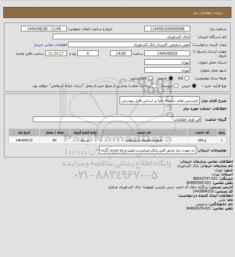 شرح کلی نیاز: لایسنس های سامانه آوایا بر اساس فایل پیوستی