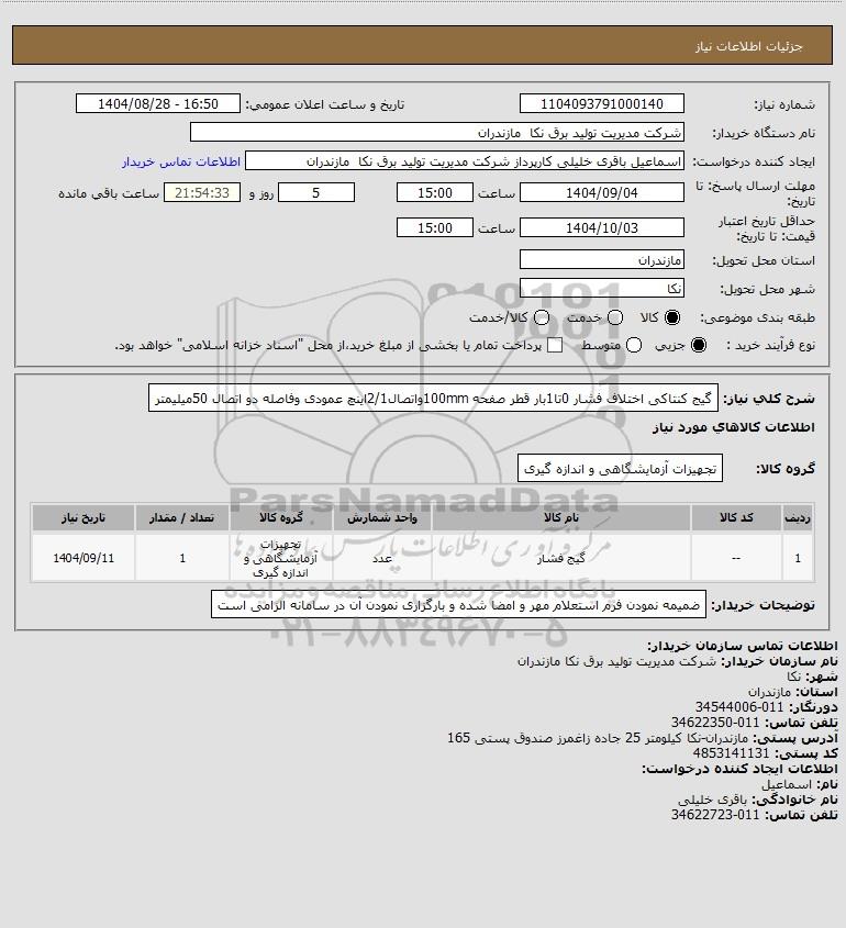 نام دستگاه خریدار:شرکت مدیریت تولید برق نکا مازندران
