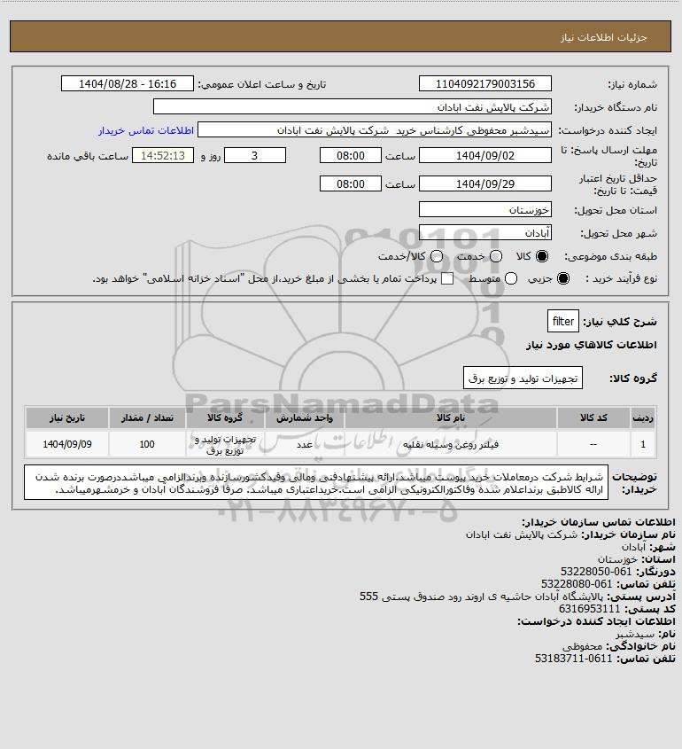 نام دستگاه خریدار:شرکت پالایش نفت ابادان