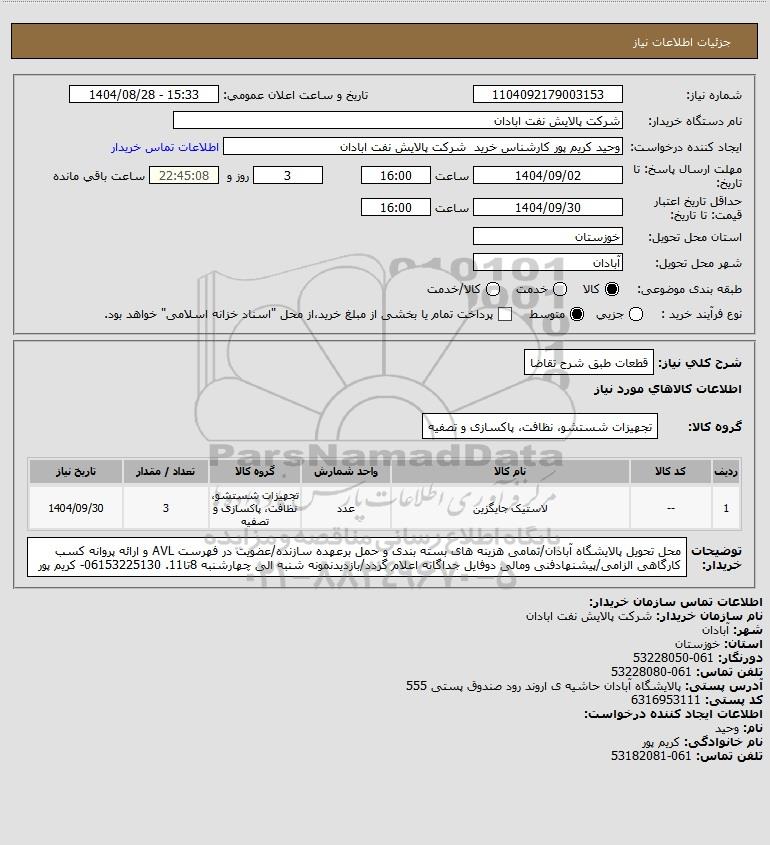 شماره نیاز: 1104092179003153