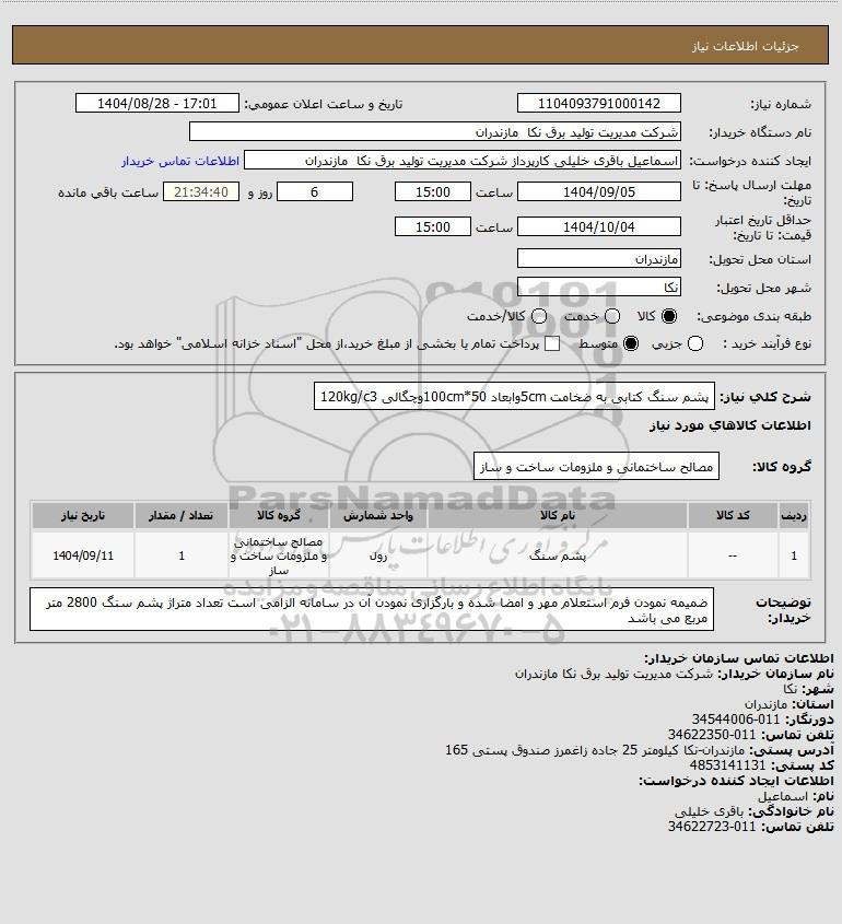 نام سازمان خریدار: شرکت مدیریت تولید برق نکا مازندران