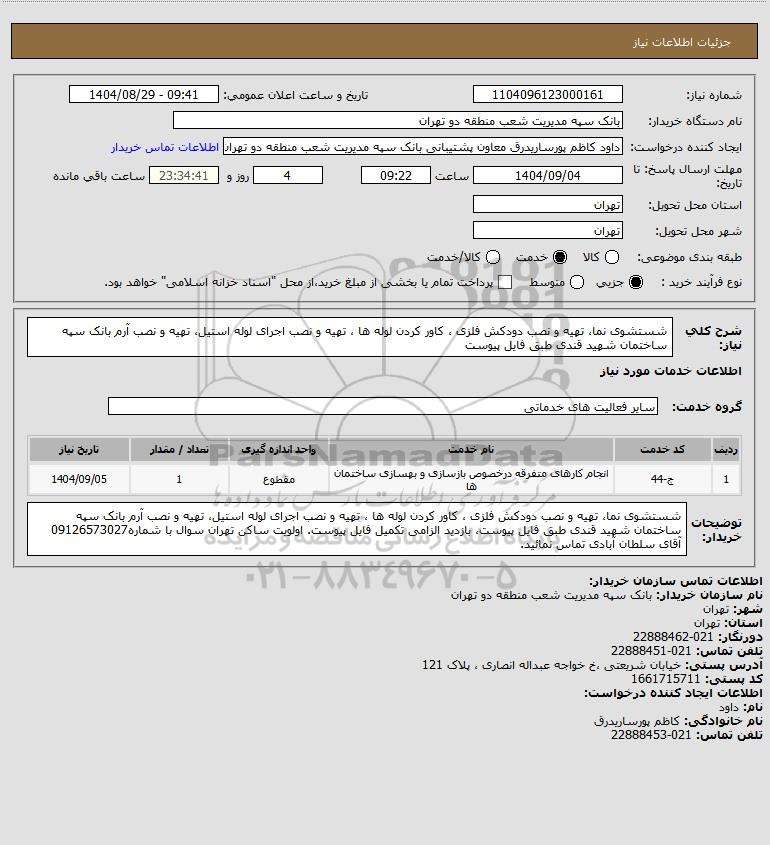 نام سازمان خریدار: بانک سپه مدیریت شعب منطقه دو تهران