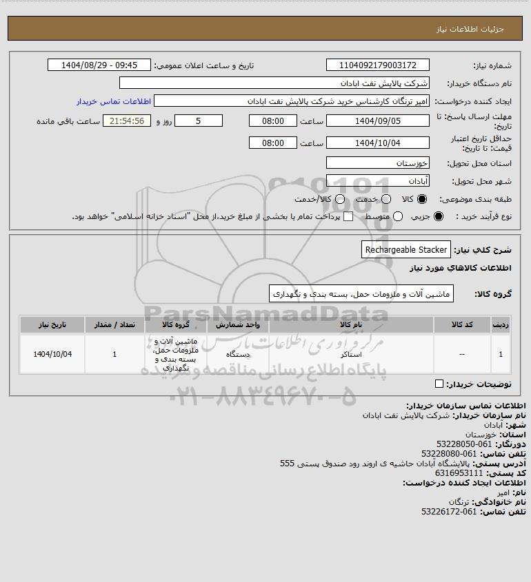 | 1 | -- | استاکر | دستگاه | ماشین آلات و ملزومات حمل، بسته بندی و نگهداری | 1 | 1404/10/04 |