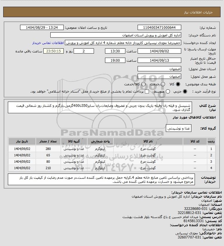 نام دستگاه خریدار:اداره کل اموزش و پرورش استان اصفهان