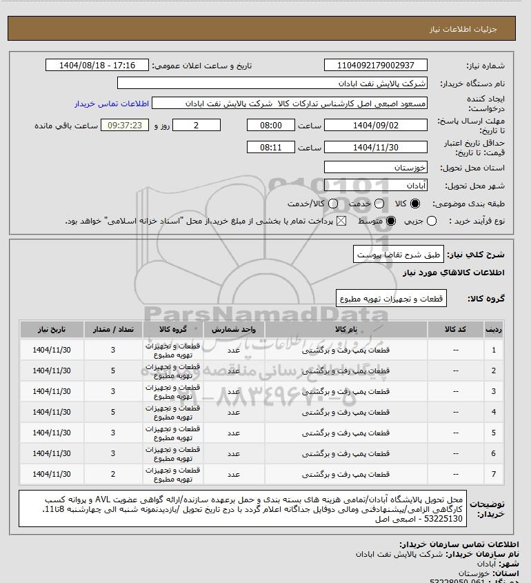 نام سازمان خریدار: شرکت پالایش نفت ابادان