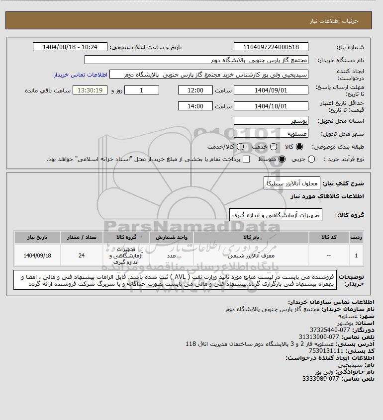 نام سازمان خریدار: مجتمع گاز پارس جنوبی پالایشگاه دوم