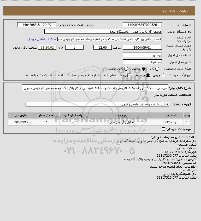 نام دستگاه خریدار:مجتمع گاز پارس جنوبی پالایشگاه پنجم