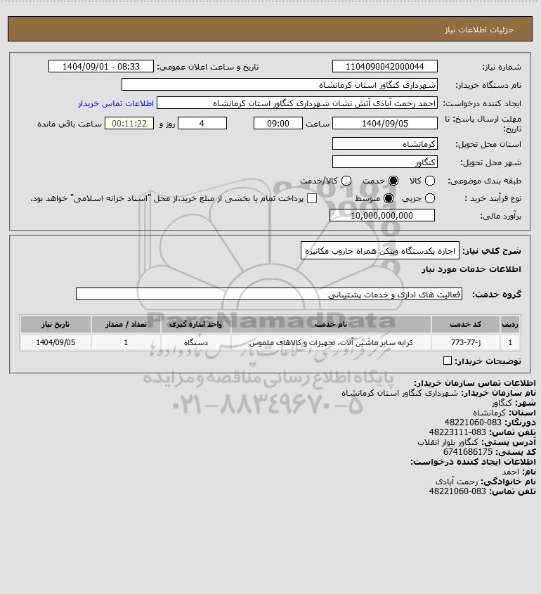 نام دستگاه خریدار:شهرداری کنگاور استان کرمانشاه