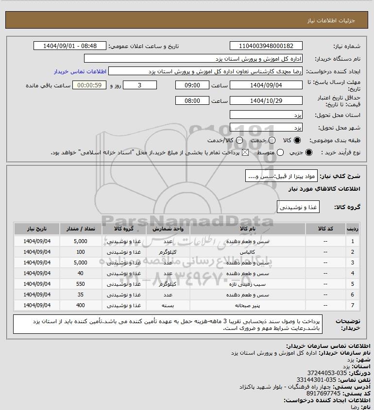 شرح کلی نیاز: مواد پیتزا از قبیل:سس و....