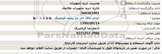 چاپ آگهی استعلام و پیوستهای آن از طریق سایت اینترنتی کارخانه