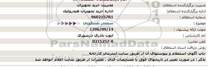اداره برگزارکننده استعلام: اداره خرید تجهیزات هیدرولیك