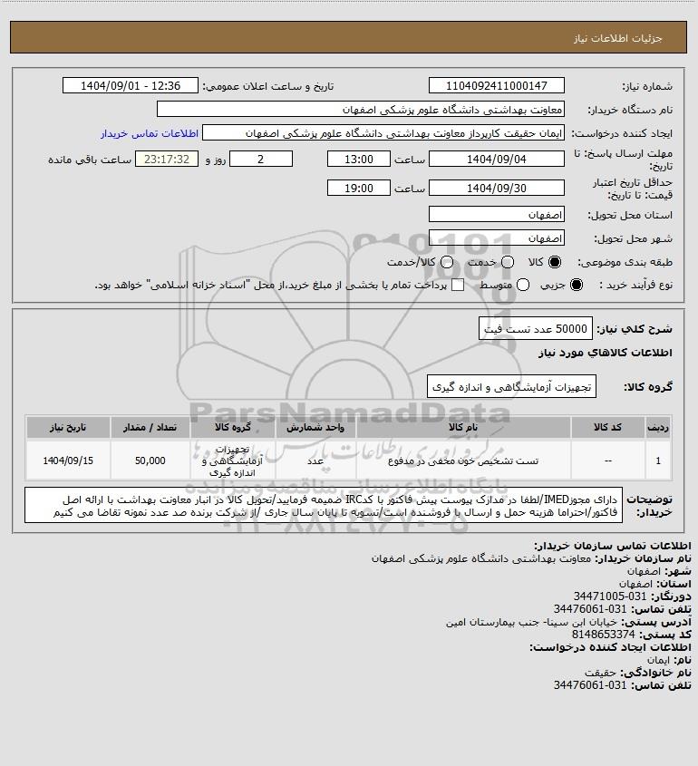شرح کلی نیاز: 50000 عدد تست فیت