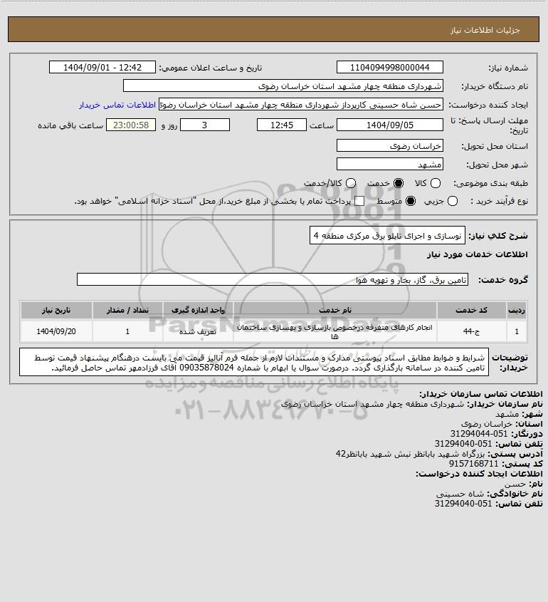 نام دستگاه خریدار:شهرداری منطقه چهار مشهد استان خراسان رضوی