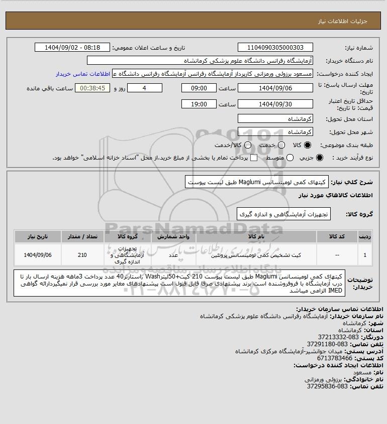 شرح کلی نیاز: کیتهای کمی لومینسانس Maglumi طبق لیست پیوست