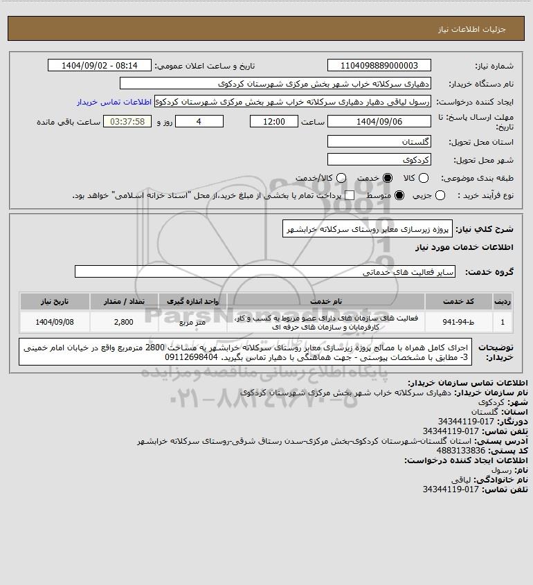 شرح کلی نیاز: پروژه زیرسازی معابر روستای سرکلاته خرابشهر