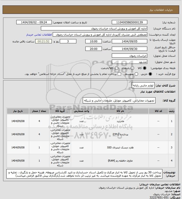 نام دستگاه خریدار:اداره کل اموزش و پرورش استان خراسان رضوی