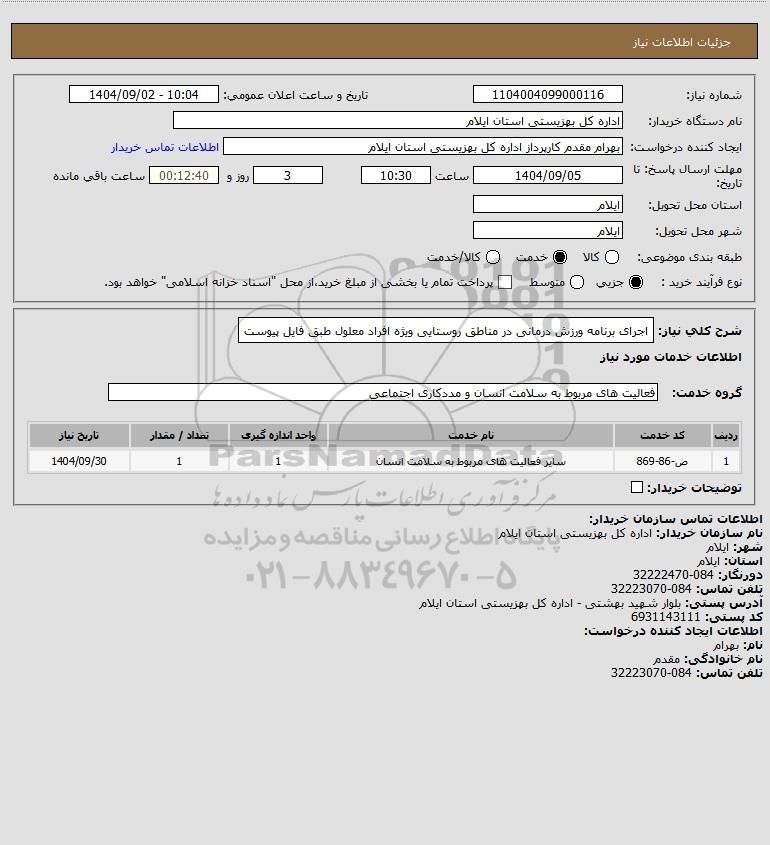 شرح کلی نیاز: اجرای برنامه ورزش درمانی در مناطق روستایی ویژه افراد معلول طبق فایل پیوست