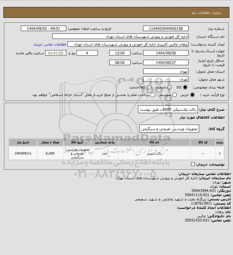 شرح کلی نیاز: راکت پلاستیکی 6000 د طبق پیوست