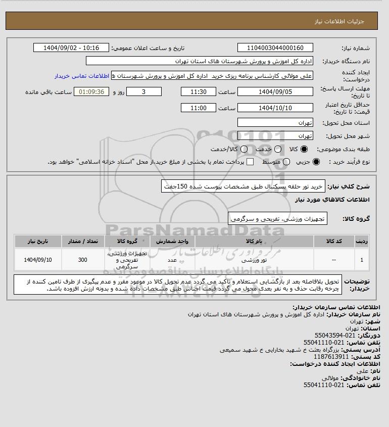 1 -- تور ورزشی عدد تجهیزات ورزشی، تفریحی و سرگرمی 300 1404/09/10