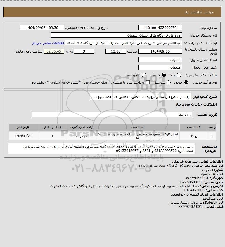نام دستگاه خریدار:اداره کل فرودگاه های استان اصفهان