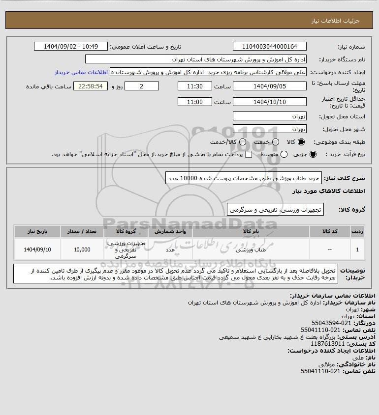 نام سازمان خریدار: اداره کل اموزش و پرورش شهرستان های استان تهران