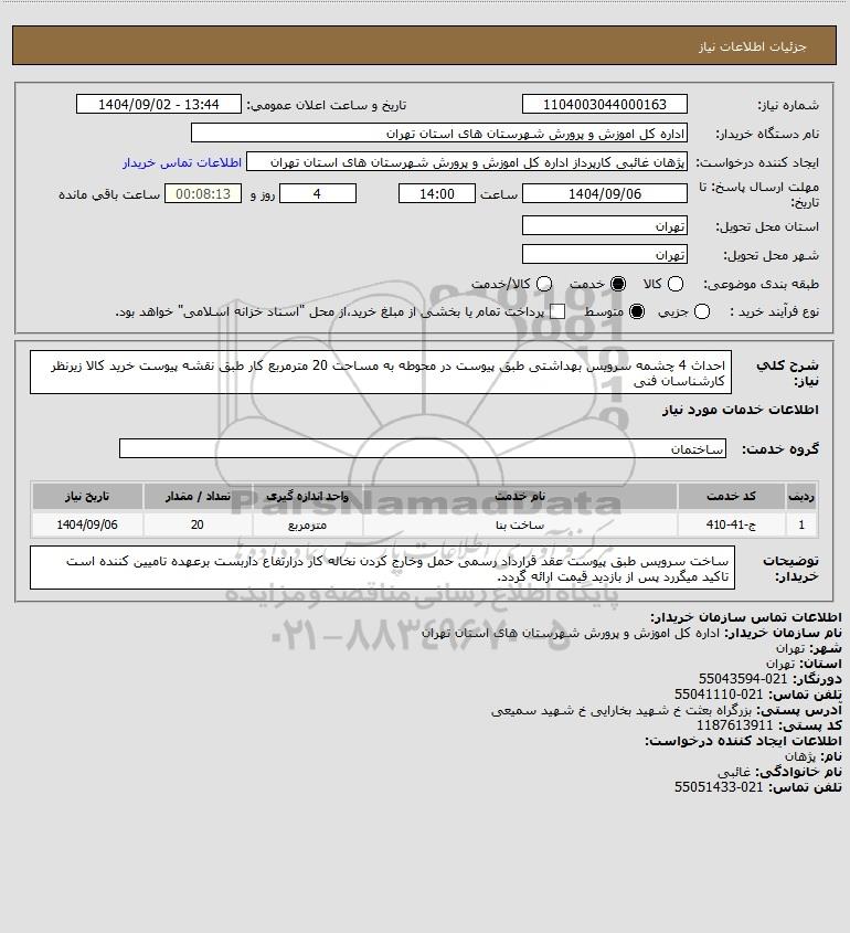نام دستگاه خریدار:اداره کل اموزش و پرورش شهرستان های استان تهران
