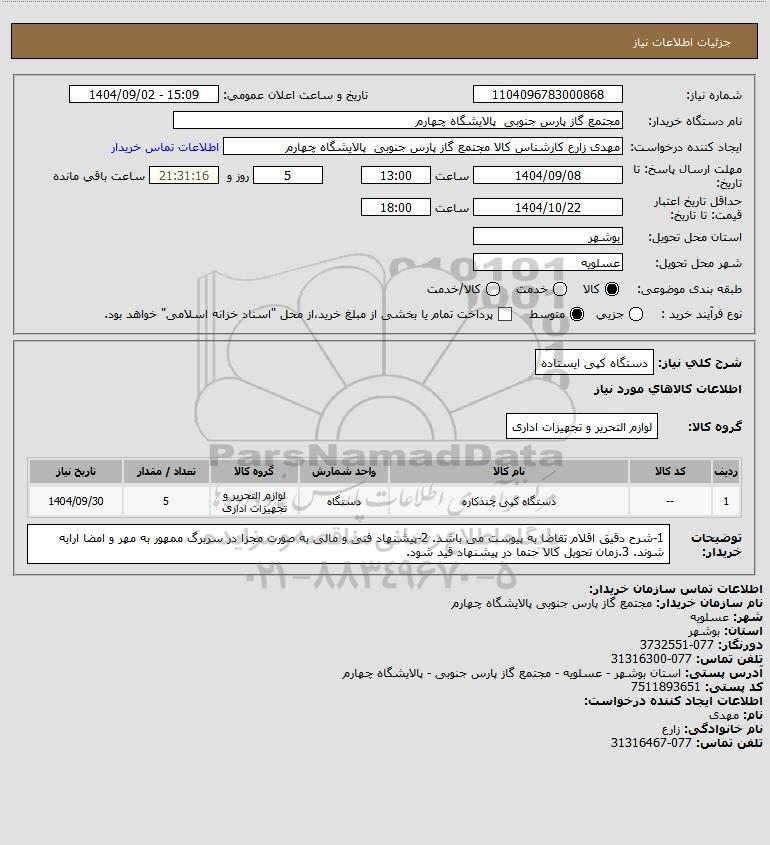 شرح کلی نیاز: دستگاه کپی ایستاده