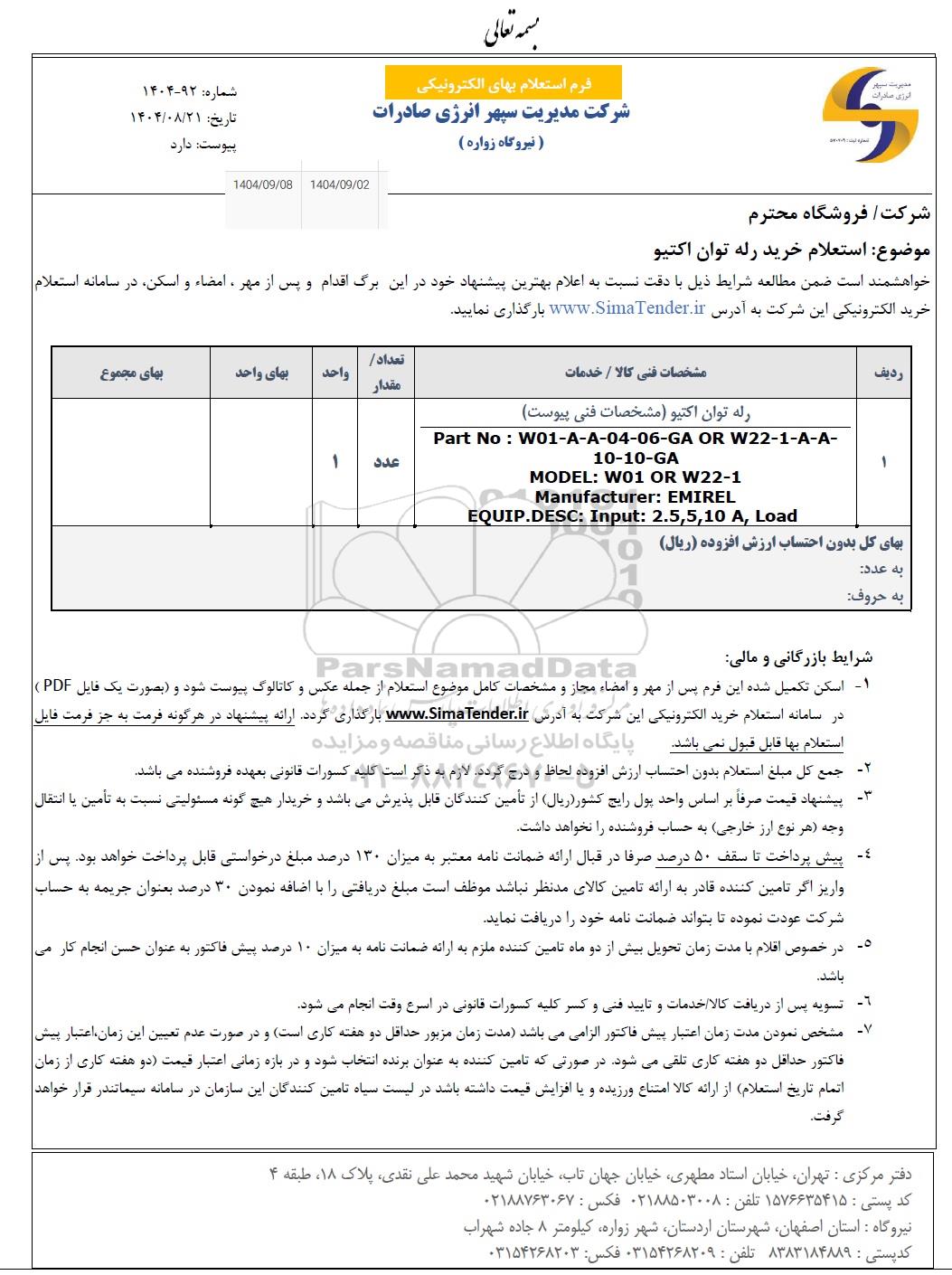 استعلام خرید رله توان اکتیو , استعلام خرید رله توان اکتیو
