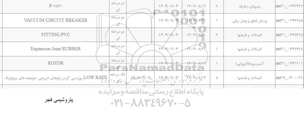 در صورت نیاز به دریافت راهنمایی یا پشتیبانی در خصوص استعلام و مناقصه و فراخوان مناقصه عمومی، مناقصه محدود، مناقصه بین المللی، مناقصه دولتی، مناقصه خصوصی، مناقصه آنلاین فروش تجهیزات، مناقصه مشاورهای مناقصه پتروشیمی و انرژی مناقصه صنایع و تجهیزات برق و مخابرات و نفت و گاز ... لطفاً با سایت خبری مناقصه و مزایده پارسنماد دادهها به شماره 88349670 تماس حاصل فرمایید.