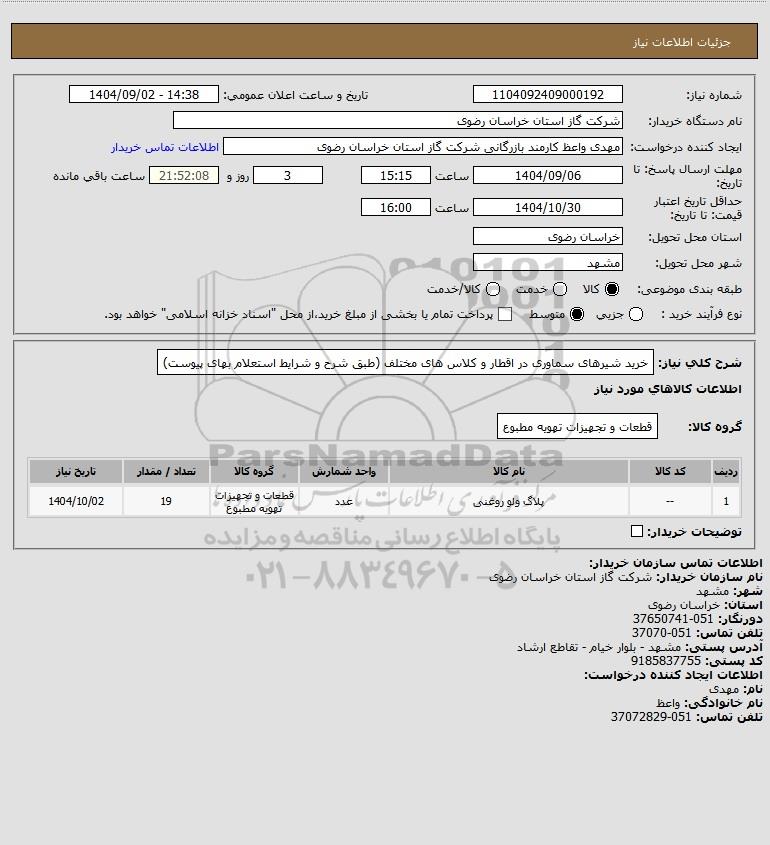 نام دستگاه خریدار:شرکت گاز استان خراسان رضوی