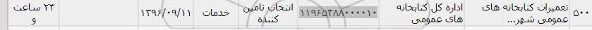 استعلام بها و موضوع استعلام استعلام , استعلام تعمیرات کتابخانه های عمومی شهر به اطلاع کلیه شرکتها و افراد متخصص واجد شرایط میرساند، آگهی گذار در نظر دارد از طریق استعلام بها، نسبت به انتخاب و دریافت پیشنهادات اقدام نماید. این استعلام با کد آگهی ثبت شده در سامانه خبرگزاری پارس نماد : 989604 منتشر شده است. مشخصات استعلام : تاریخ شروع استعلام: 1396/09/12 آخرین مهلت ارسال پیشنهاد قیمت : 1396/09/13 و محل اجرای پروژه : استان سایر میباشد. استعلام قیمت مورد درخواست : استعلام , استعلام تعمیرات کتابخانه های عمومی شهر با دستهبندیهای تخصصی و گروه های مرتبط : ساختمان, استعلام اطلاع رسانی میگردد.
