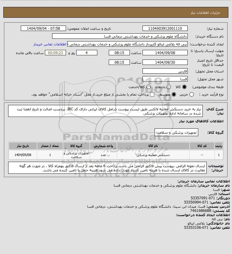 نام دستگاه خریدار:دانشگاه علوم پزشکی و خدمات بهداشتی درمانی فسا