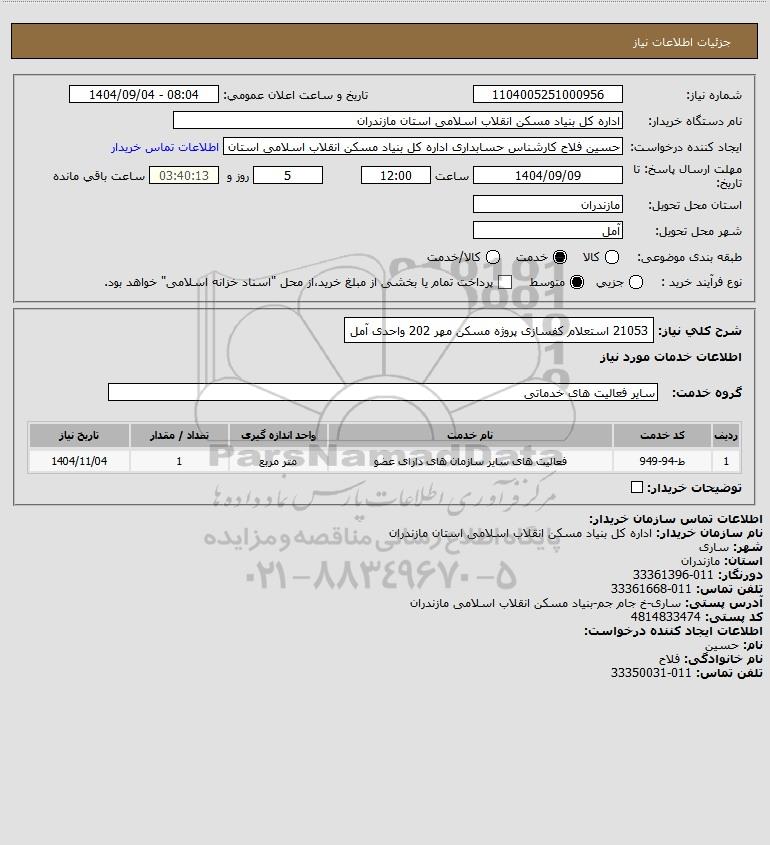 نام دستگاه خریدار:اداره کل بنیاد مسکن انقلاب اسلامی استان مازندران