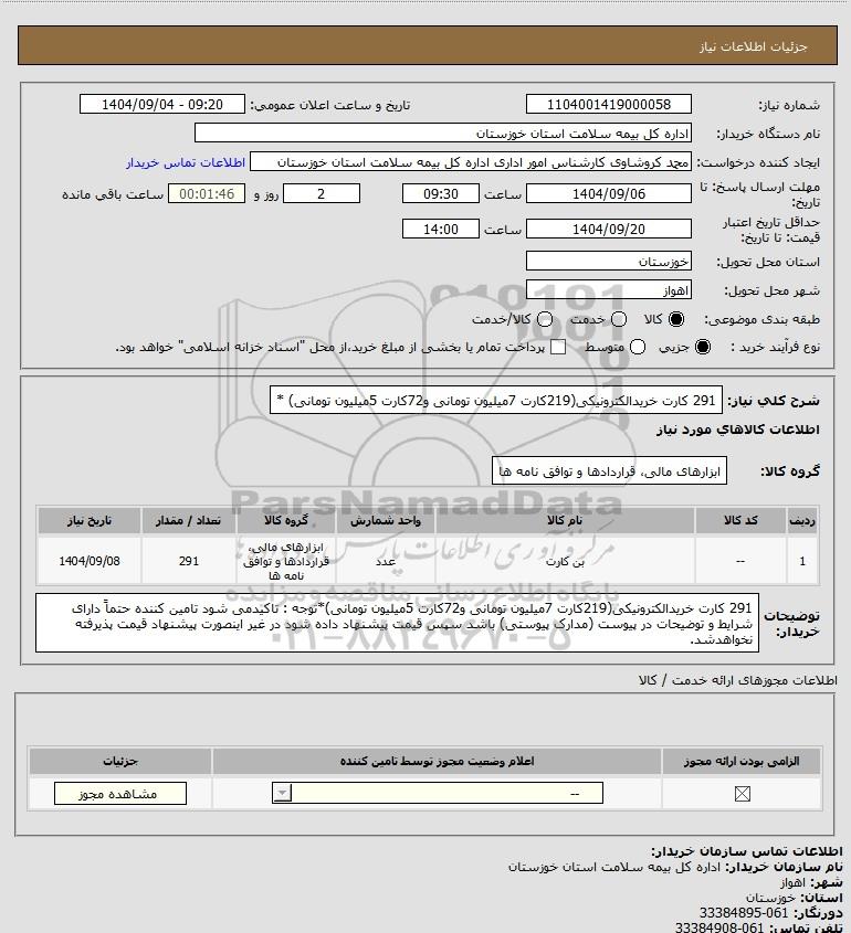 استعلام 291 کارت خریدالکترونیکی(219کارت 7میلیون تومانی و72کارت 5میلیون تومانی) *, استعلام 291 کارت خریدالکترونیکی(219کارت 7میلیون تومانی و72کارت 5میلیون تومانی) *