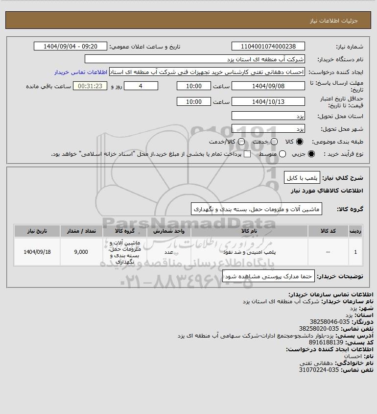 شرح کلی نیاز: پلمپ با کابل