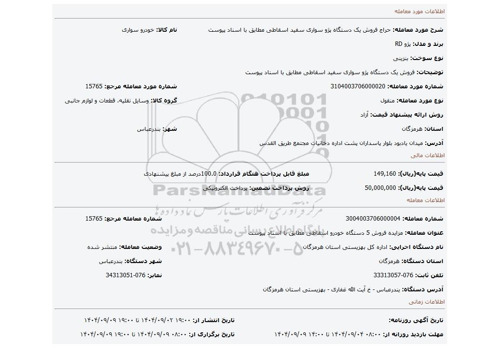 | شماره مورد معامله: 3104003706000020 | شماره مورد معامله مرجع: 15765 | |
