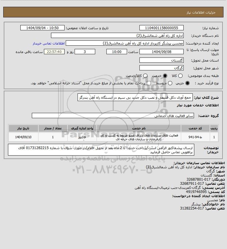 شرح کلی نیاز: جمع آوری دکل قدیمی و نصب دکل جدید بی سیم در ایستگاه راه آهن بندرگز