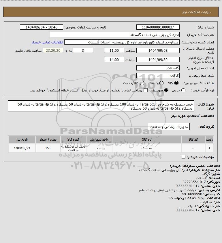 استعلام خرید سمعک به شرح زیر: 1)Targa 5 به تعداد 100 دستگاه 2)targa Hp 5 به تعداد 50 دستگاه 2)targa Hp 5 به تعداد 50 دستگاه 2)targa Hp 5 به تعداد 50 دستگاه, استعلام خرید سمعک به شرح زیر: 1)Targa 5 به تعداد 100 دستگاه 2)targa Hp 5 به تعداد 50 دستگاه 2)targa Hp 5 به تعداد 50 دستگاه 2)targa Hp 5 به تعداد 50 دستگاه