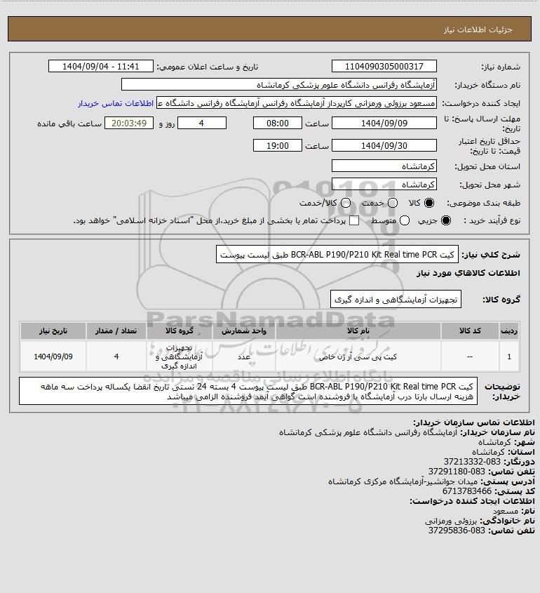 نام دستگاه خریدار:آزمایشگاه رفرانس دانشگاه علوم پزشکی کرمانشاه