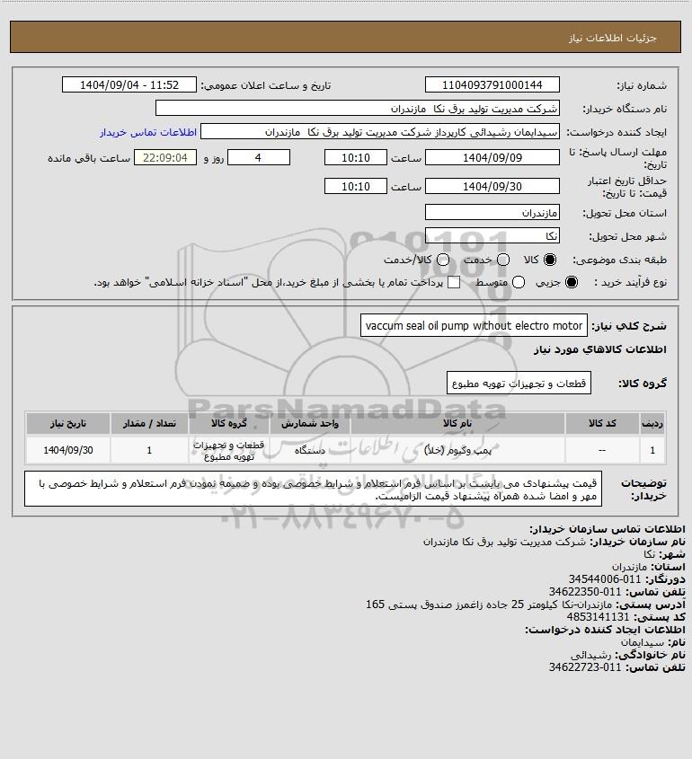 نام دستگاه خریدار:شرکت مدیریت تولید برق نکا مازندران