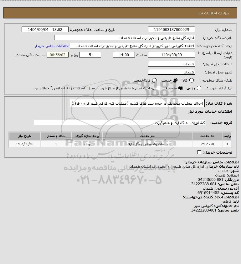 نام دستگاه خریدار:اداره کل منابع طبیعی و ابخیزداری استان همدان