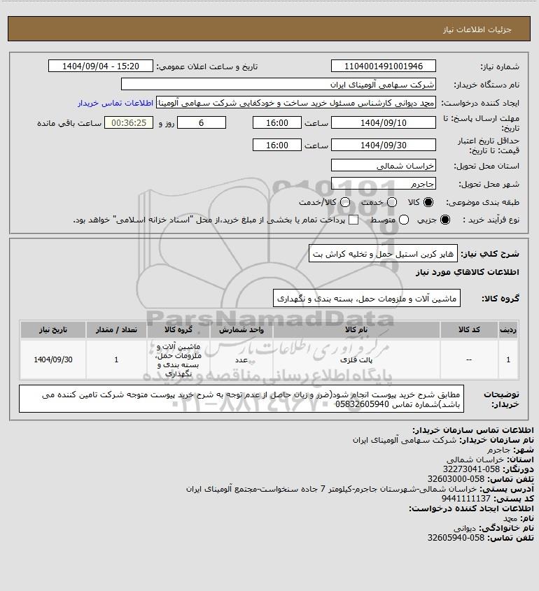 نام دستگاه خریدار:شرکت سهامی آلومینای ایران