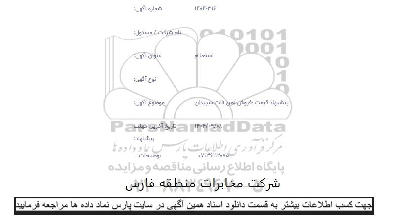 استعلام فروش آهن آلات سپیدان , استعلام فروش آهن آلات سپیدان