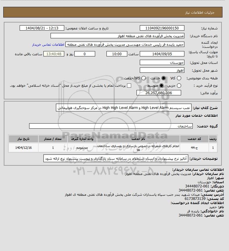 استعلام نصب سیستم High Level Alarm و High High Level Alarm، سامانه ستاد- استعلام روز چهارشنبه پنجم آذر ماه 1404, استعلام نصب سیستم High Level Alarm و High High Level Alarm، سامانه ستاد